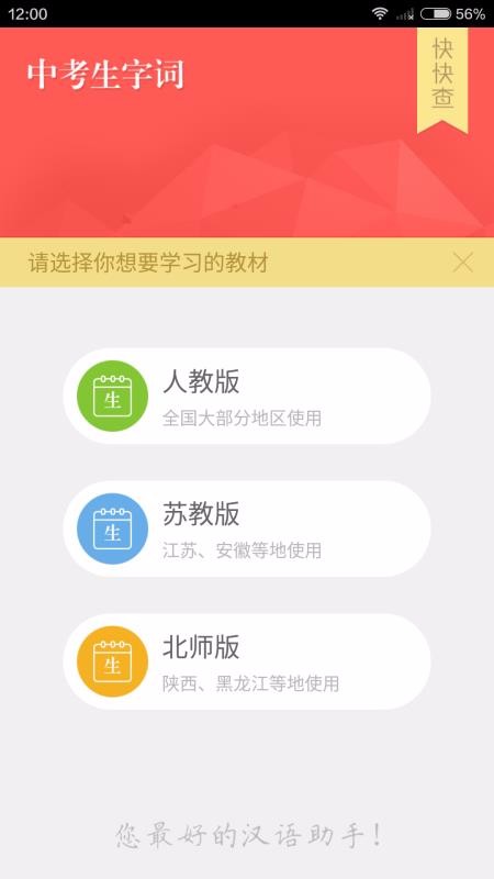 中考生字词app是一款语文学习平台;该平台推送初中语文词汇,学生可以在线学习所有词汇,助力学生及时掌握更多的词汇知识,从而更从容的面对考试;与此同时,该平台还支持用户自主收藏字词,收藏成功就可以随时浏览复习;每一组词语都有准确的拼音以及解释,还可以查看到引证详情,学生可以全面的了解相应词语释义;不仅如此,这里还提供不同教材知识,可以自主选择人教版、苏教版以及北师大版,根据个人情况选择就可以立即学习,使用非常简单,需要的朋友赶快下载使用这款软件学习语文词汇吧。