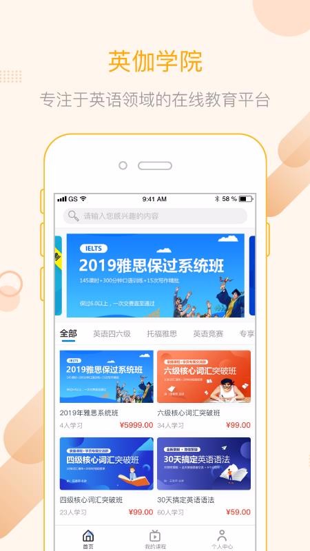 英伽学院app是一款专业的英语教育学习平台;该平台推送托福雅思、英语四六级以及英语竞赛等相关课程,用户可以根据个人需求选择购买课程,购买之后可以随时学习,专业名师授课,用户可以学习到更多专业知识;与此同时,该平台还支持用户在线缓存课程,可以直接下载需要的课程,缓存成功就可以离线播放,从而节省更多流量;可以直接浏览课程详情,能够及时掌握课程任务,明确课程目录;随时可以查询钱包余额,查看后可以自主使用余额;支持用户随意修改个人信息,完善信息后可以立即保存使用。