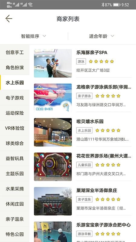 6、可自由选择孩子的年龄段,快速查找适合的商家进行亲子活动;