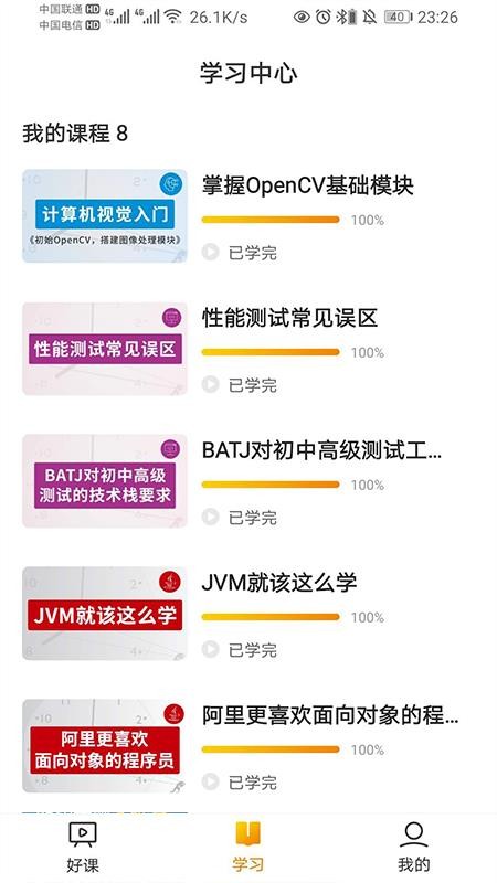 4、进入学习版块,查看自己的各个课程信息,了解课程详细学习进度