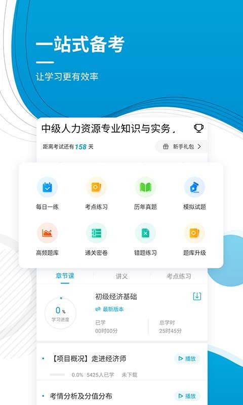 经济师考试准题库app是专为备考经济师证件的用户提供的一款手机学习软件,这里能够我用户提供各种各样的题库资源,覆盖了经济师相关的题型,让你随时都可以通过手机在线刷题练习,并且这里还能够为用户提供高频题库、考前押密、考前押题、视频详解、每日一练、考点练习等各种练习题库,可以更好的满足用户的学习需求;同时这里还拥有大量的学习课程,能够根据用户的学习情况自动的为您进行推荐,更为用户提供了各种免费的直播课,用户可以直接进入直播间与老师进行互动交流学习,得到更好的学习效果。