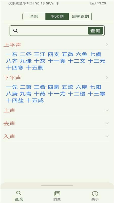 5、显示丰富的韵律术语,比如平水韵栏目下就有上声平中的一东、二冬和四支等;