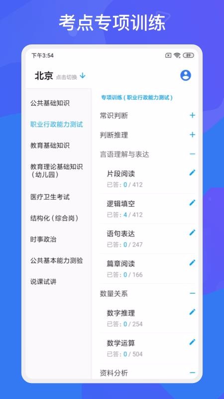 4、海量题库,涵盖了各省份的事业单位考试,并且免费使用;