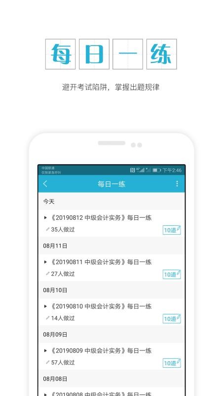 1、清晰的每日学习内容,及时完成每天10道题目,强化学习;