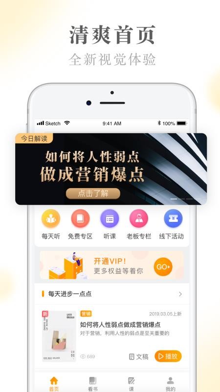 共好学app是一款优质的手机学习软件,这里能够为用户提供海量丰富的有声资源, 拥有丰富企管资讯,深度提炼精华解读,可以帮助用户轻松的学习企业经营管理知识,更好的提升自己;并且每天都会为你实时进行更新,让你可以在这里学习到更多的新知识,并且这里还为用户提供了强大的听书功能,能够更好的解放你的双手和双眼,让你可以更好的在这里听书,深入获取更多的知识,同时用户还可以在这里自定义自己的阅读界面,设置文章字体的大小、颜色以及背景图片,让您可以更好的在这里进行收听,非常的方便实用。
