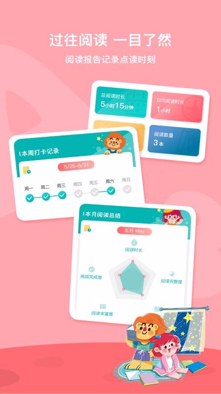 爱阅家是一个亲子阅读类的软件,上面有丰富的亲子阅读资源,可以从中挑选小孩喜欢的读物并在线阅读;在这些绘本阅读资源中同时提供了丰富的阅读知识类型,其中涵盖了数学类的学习知识,还采用了挑战的模式为用户提供趣味的挑战游戏;这款软件主要为爱阅家会员所设计,上面汇集了关于实体课本中的点读音频资源,可以搭配相应的智能点读笔使用,只要点击绘本中相应的位置就能收听到其中的音频内容;里面还有许多练习挑战玩法类型,支持挑选一种类型并进入参与挑战,所有的学习和挑战记录都会自动统计保留下来,随时都能查看相应的学习报告。