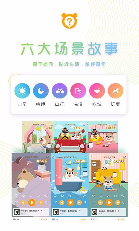 熊爸爸为什么app是一个互动幼教平台,创建了各种可爱动漫形象,包括熊爸爸、猪小花、羊博士等,并结合讲故事的形式,让儿童可以明白大道理;随时推荐每日一听,并标注了问题,可以播放该音频资源进行收听,让儿童在收听过程中找答案;提供了专门的问答小镇,通过你问我答的形式互相学习,自行发布自己的问题,并为其他人的问题进行解答;拥有丰富的场景故事,包含叫早、哄睡、出行、吃饭、玩耍等,分类查看相应的资源,一键即可播放故事进行收听,还可以进行播放设置;该软件提供了智能机器人,可以进行智能对话和微聊,也可以购买该产品进行使用。