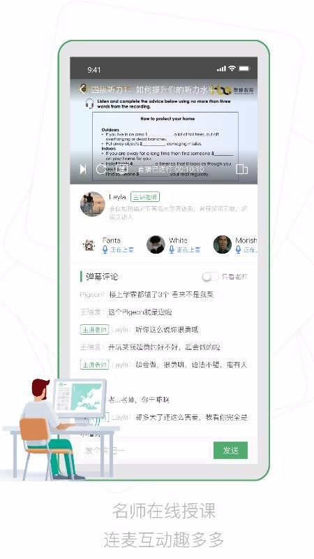 5、名师在线授课,连麦互动趣味多,同时还可以查看名师介绍并关注该老师;