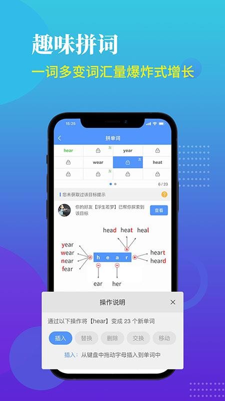 5、提供很多便捷的趣味操作,包括插入、替换、删除、交换、移动等,累积更多的词汇量;