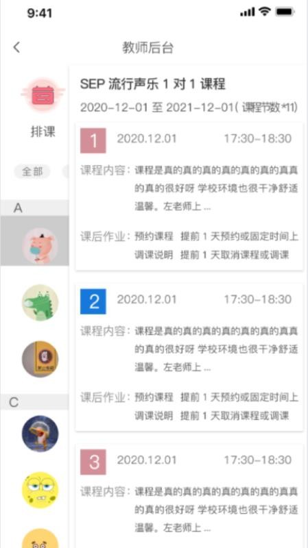 3、拥有老师版块,用户可以在这里看到各个老师的学员数量和评分情况;
