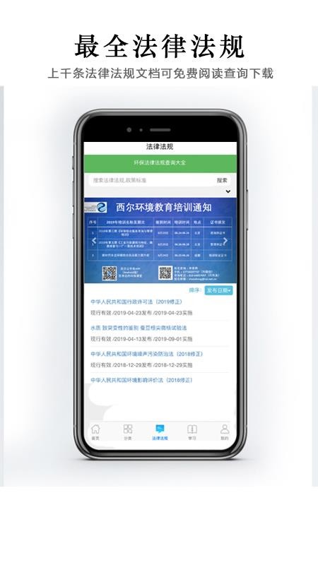 6、提供丰富多样的环保法律信息,并将法律的内容进行分类,帮助用户快速找到学习的知识点;