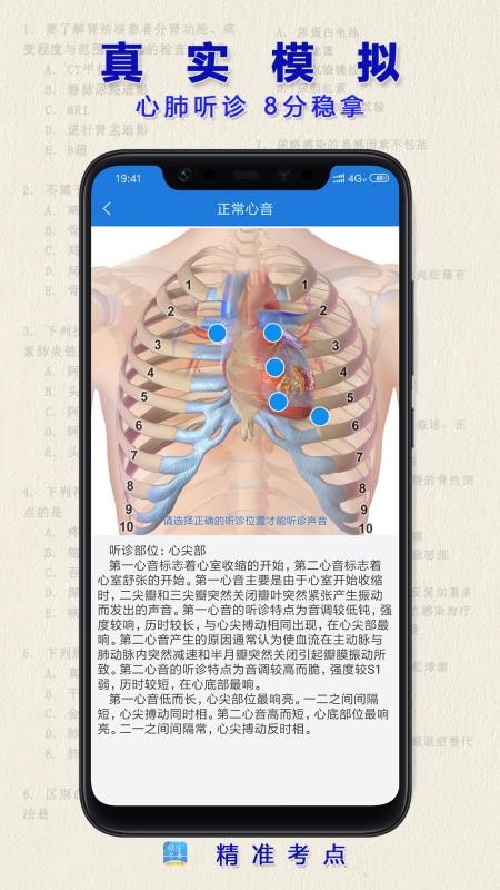 5、为用户提供真实模拟版块,让用户能够看到各种心肺听诊真实内容,轻松拿分;