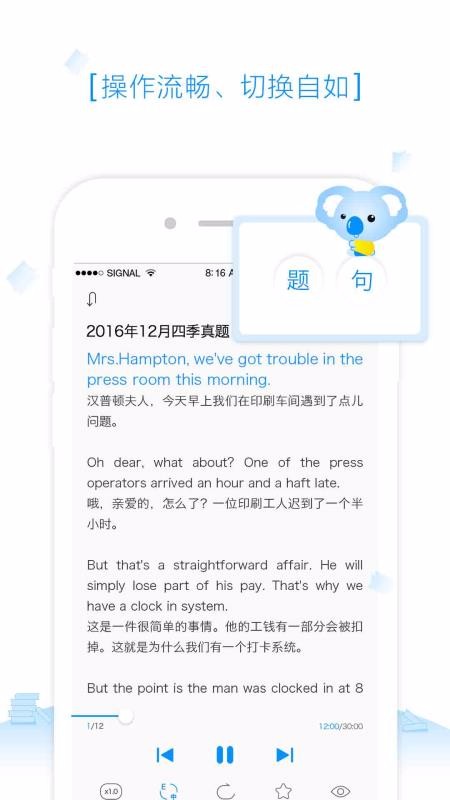 2、全文听、单句听等,越听越有效,形式多样,任意的进行选择和收听;