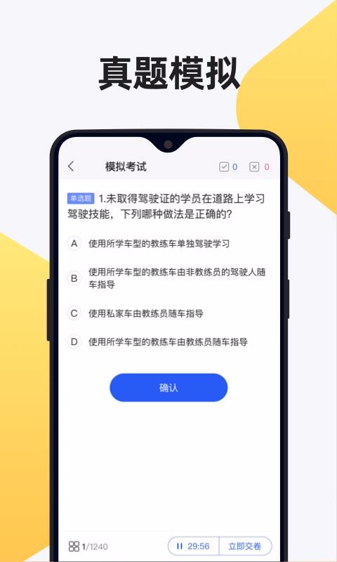 1、参与真题模拟考试,选择模拟考试后就能在里面答题并提交试卷查看考试成绩;
