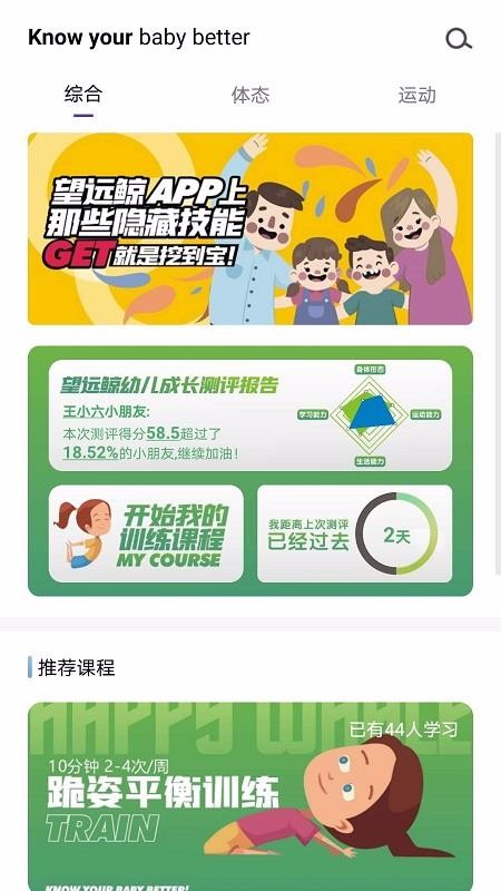 望远鲸app是一款儿童教育的软件,让你全面提高孩子的能力,让孩子拥有健康的成长环境,学到更多有用的知识;软件详细的记录孩子的测试报告,知道孩子的情况,让你对孩子有更全面的了解,提高孩子的综合能力;将身体形态、运动素质、学习能力和生活能力进行综合评分,让你知道孩子的情况;将数据进行永久保存,便于进行对比,知道综合能力的变化情况;根据薄弱的能力进行学习,提高孩子的健康,让孩子拥有更好的生活体验,能健康成长;还能每天上传孩子的饮食,给孩子更健康的生活服务,让孩子茁壮成长,并记录活动的信息,了解更多的健康资讯。