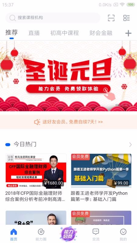6、提供圣诞元旦免费会员体验服务,软件中推送了相应的活动封面,在该期间点击进入就能免费领取体验;