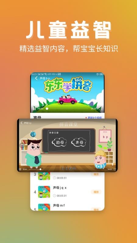 4、观看益智视频,设置有很多让宝宝独立思考的视频,随时学习;