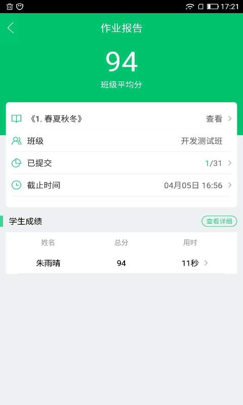 6、学生的学习报告清楚的展示在平台里,老师能够实时的进行查看;