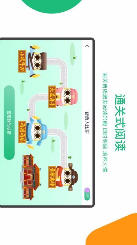 3、提供了各种闯关游戏,结合测试可以检测学生的阅读效果;