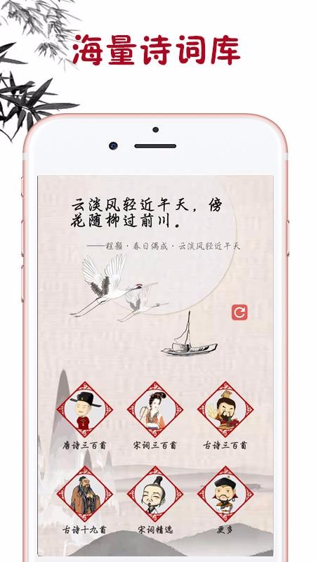 古诗词学习app是专注于学习古诗词的手机软件;该软件提供全面的古诗词,支持用户直接选择学习相应诗人的古诗,可以随意更换阅读学习;同时,平台还提供诗词搜索功能,可以直接输入关键词检索查看相应诗词,提供明确的古诗赏析,助力用户学习更多知识,从而陶冶情操;随时随地打开应用就可以开始查看学习,提供的古诗词更加清晰;支持直接选择唐诗三百首、宋词三百首、宋词精选或者古诗十九首等,便于及时阅读学习同类古诗词;古诗词学习app还有超多精选内容,赶紧下载开始学习古诗词吧。