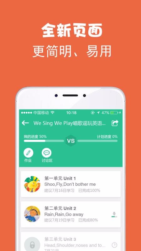 绘分享是专门为0-9岁的儿童提供的家庭教育平台,包含了中英文故事、英文儿歌、诗歌、艺术等相关的学习内容,帮助家长更好的教育孩子;用户在线可以制定学习计划进行完成,自动统计用户实际完成的情况并进行对比,随时可以查看我的进度和计划进度;选择单元之后即可下载进行学习,包括视频课程、测试练习、图文课程等,随时为你显示完成进度,并提供了建议学习时间;拥有丰富的曲库,在线可以任意的选择儿歌进行播放,相应的也可以进行播放设置;在线还可以进行英语点读,通过提供的趣味游戏和绘本故事,点击单词即可收听读音。