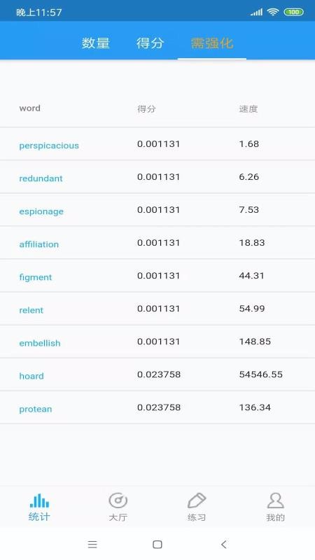 5、查看统计的信息,了解自己词汇的记忆情况,提高学习的质量,便于快速学习;