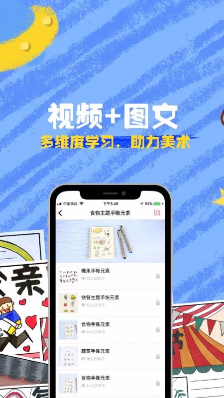 画图是一个简笔画绘画教学软件,拥有丰富的素材元素,通过图文和视频的形式为你介绍了如何绘画,让儿童可以快速的完成绘画;可以在该平台中发现丰富的手账元素,按照分类查看推荐的课程之后,可以选择性的进行学习;自行购买或分享课程进行解锁课时,一键即可将该课程分享给好友观看;同时用户可以任意的搜一搜,输入关键词自动显示相符合的课程,让快速的查找;相应的也可以在这里发现关于手抄报的画画元素,让你轻松制作出个性十足的手抄报;随时为用户精选素材进行推荐,让你了解大家都在画什么。