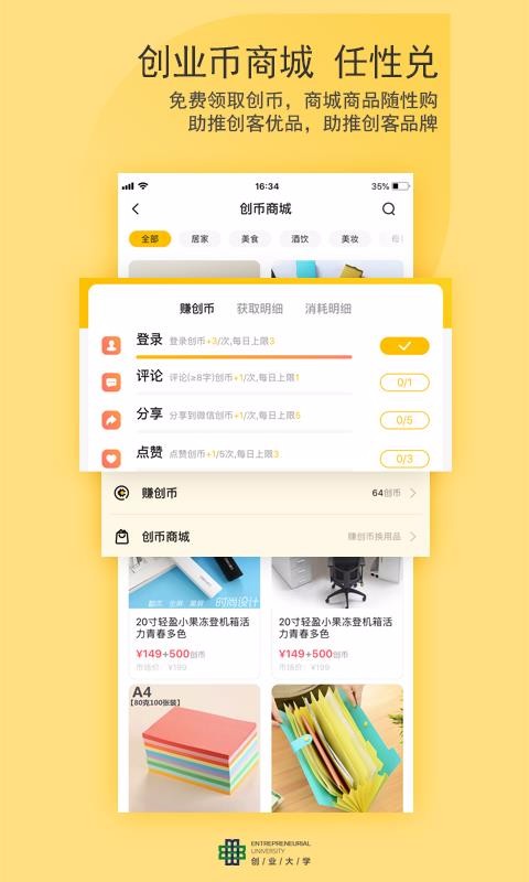 6、完成任务赚创币,在创币商城中查看其中的任务列表并按照要求完成;