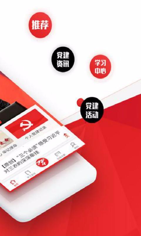 1、结合互联网和党建学习,让用户在手机中即可了解各种党建知识;
