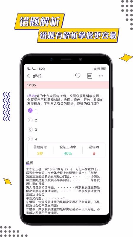 5、显示丰富的解析统计数据内容,题目解析页面中除了答案和解析外还展示答题用时、全站正确率以及易错项等;