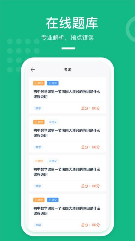 3、平台提供模拟考试,更好的检测用户的学习情况,让用户了解自己的不足之处;