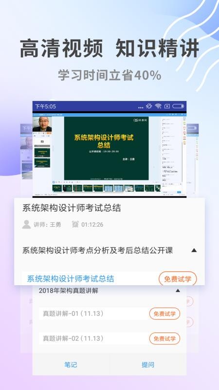 系统架构师题库app是一款提供系统架构师考试资料信息软件,含有历年真考、模拟试题、章节练习、高频考点等信息学习资料,用户可以在线学习到系统的考试知识,帮助用户学习更多的知识点,顺利通过考试,获得资格证书;用户可以在线练习每年的考试真题,了解考试出题走向和历年来出现的高频考点内容,及时掌握和学习重要的知识点,还能够在做题练习的实时掌握各个板块的知识内容;也可以参与模拟考试,报名参与考试,及时检测学习的情况,了解自己的弱项,及时强化学习;还有在章节练习中学习每一个章节的内容,掌握重要的知识点。