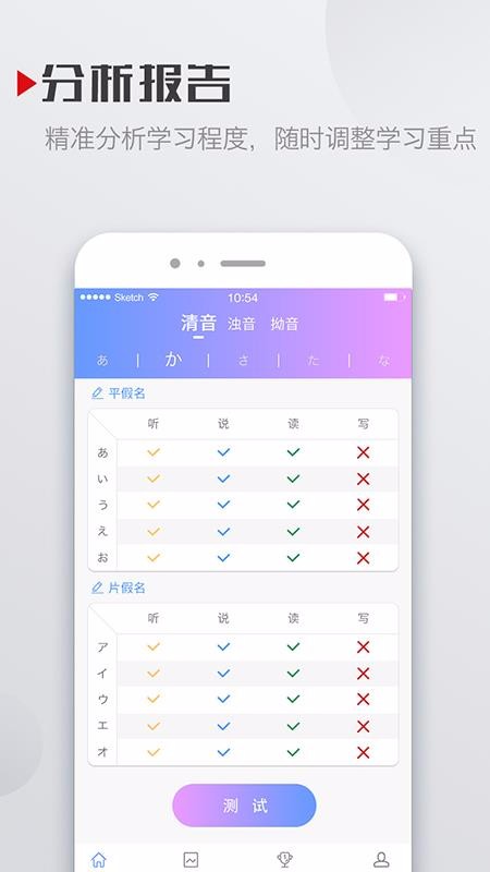 学日语app是一款专业的日语学习平台;您可以使用这款软件随时随地学习日语,能够学习更加专业的日语知识;这里有最全面的习题,在线观看教学视频学习后可以及时选择练习,通过趣味性的练习方式,可以更轻松的记忆假名;可以随时收听专业的发音,练习发音更加便捷;不仅如此,这里还有测试的功能,可以及时测试自己的学习成绩,有效的知晓当前学习能力;听、说、读、写四个环节随意练习,能够掌握更全面的知识;推送详细的学习报告,可以随意查看,及时了解自己的不足之处,有效的补足。
