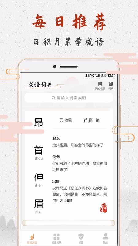 2、直接查看推送的每日成语,随意更换使用,及时收藏