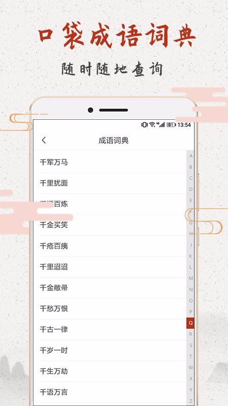 3、支持查询的成语众多,成语非常的丰富,方便用户及时学习相应成语;