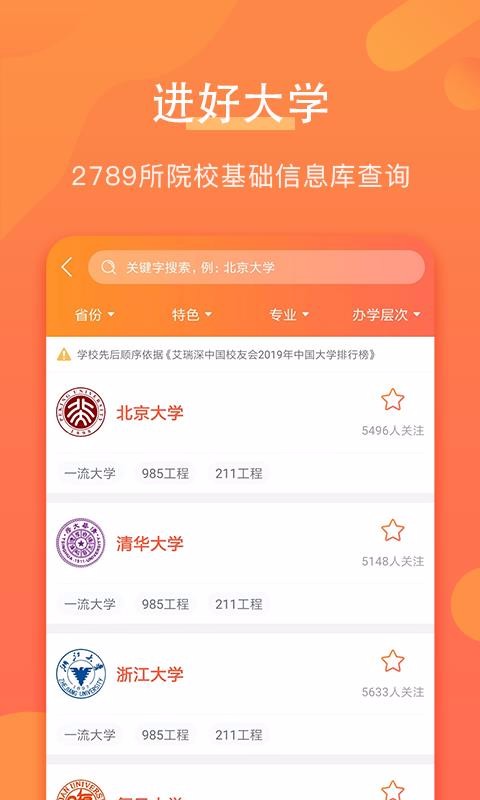 4、快速筛选大学,了解每个大学的情况,便于找到合适自己的大学;