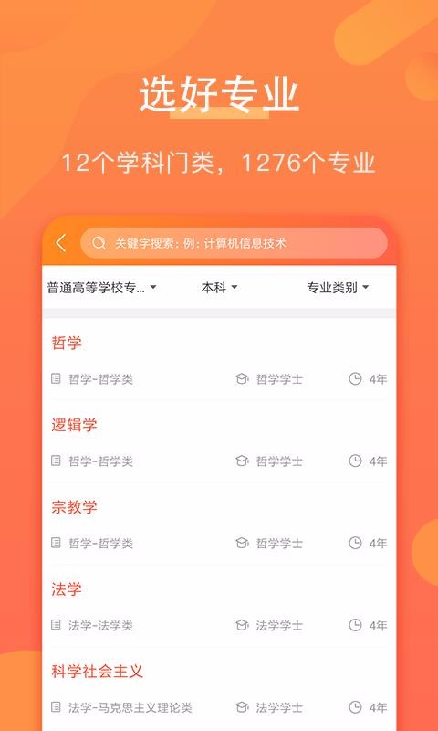 优彼致愿app是一款高考升学的服务软件,让你得到更专业的帮助,能找到更好的大学,体验优质的教学服务,学习质量更高;所有的通知信息统一记录,知道信息的详情,了解学校的动态,掌握升学选科的方法,提高升学的质量;制定专属的优质升学计划,全面考虑大学、专业、分数线和选科要求,综合分析进行选择,提高升学的质量;根据省份、特色、专业、办学层次进行筛选,快速找到满足要求的大学,了解大学的详情,让升学的选择更满意;根据专科、本科、类别进行筛选,找到喜欢的专业,能学到喜欢的知识,提高学习的积极性。