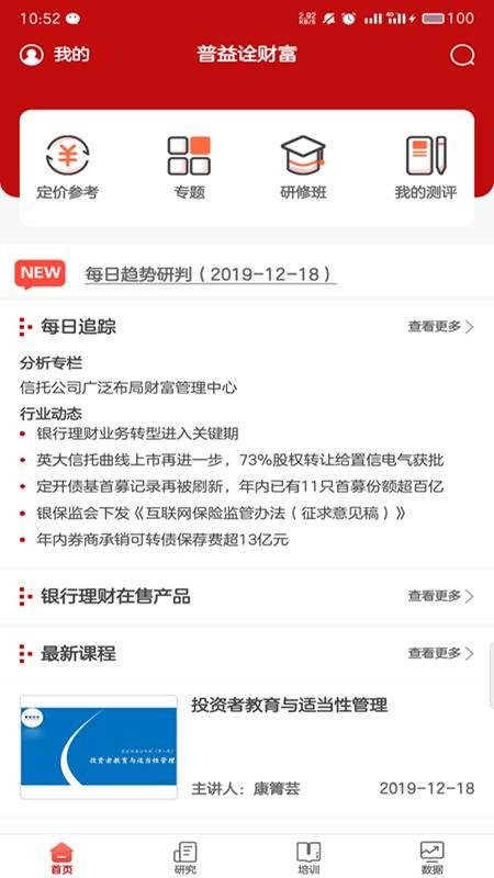 普益诠财富是一款可以学习财富管理知识的软件,帮助用户提升自己的财富管理能力,让用户在生活中能够更好的进行理财,为用户提供优质的学习服务;所有的学习内容全部展示在平台里,进入平台就能够快速的进行使用,用户可以根据自己的情况快速的进行选择,找到你需要的财富知识,更好的进行学习,让用户能够获得更多的帮助;在学习的过程中,用户可以清楚的看到各种丰富的产品内容,准确的区分产品的信息,使用户在学习的过程中能够获得优质的服务,帮助用户能够了解全面的财富知识,确保用户能够更好的进行理财投资。