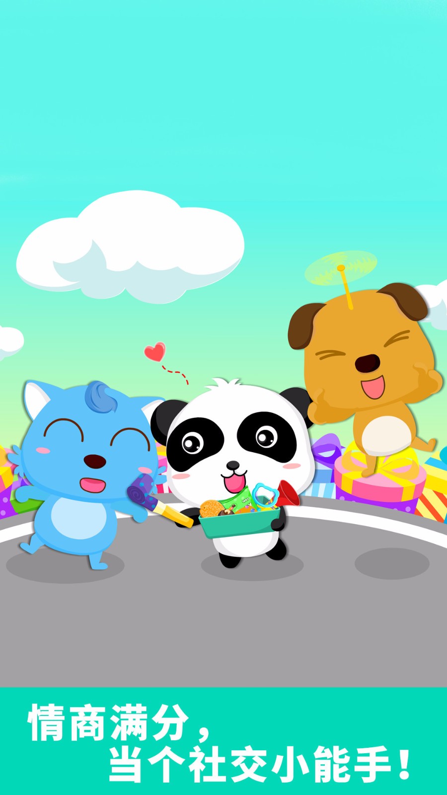 2、不同的场景和可爱的互动,可以让宝宝学会关心,提前适应和同龄人的相处;
