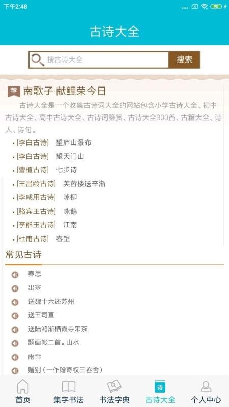 5、点击古诗大全,能够在这里查看到大量的古诗词