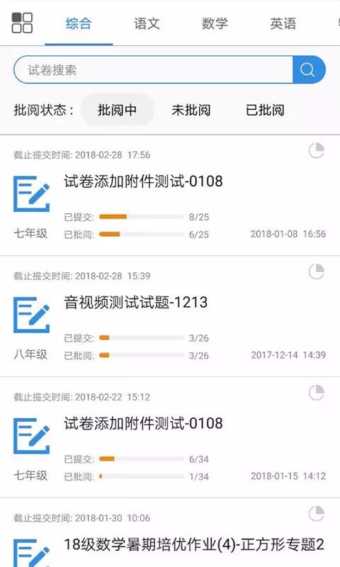 6、查看批阅的作业进度,便于及时批阅,给学生更好的批阅体验;