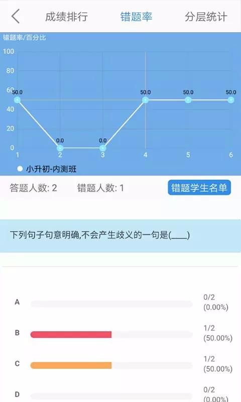 2、查看错题率,知道学生做错题的情况,便于给学生讲解题目的解题方法,提高解题的质量;