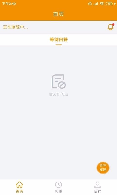 3、进入首页后,即可选择开始接题、暂停接题等