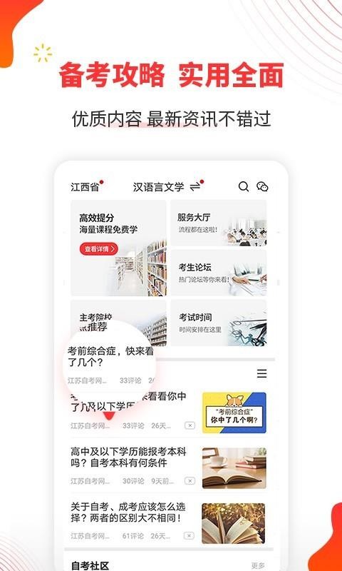 自考伴app是为用户提供的一款专业的手机备考学习软件,这里为用户提供了大量的学习资源,提供了中国近代史、毛概、英语、大学语文、经济法概论、人力资源、汉语言文学等等科目的学习课程,用户可以自由的根据自己的需求在这里选择学习;同时还可以通过视频、直播、题库等方式来学习,更为用户提供了各种题库资源,还拥有各种模拟考试,能够更好的通过模拟考试进行查漏补缺,更快捷的提高用户学习水平;你也可以在这里快速的一键下载自己的学习课程,方便你随时随地离线观看学习,非常的方便。