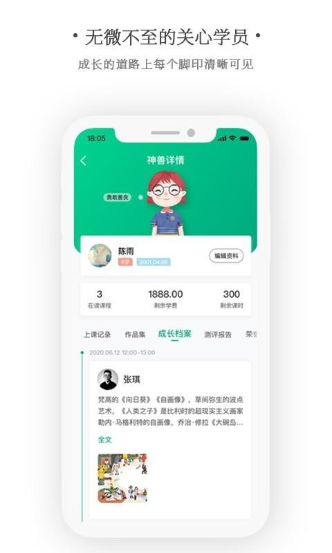 6、拥有学生详情版块,用户在版块中可以看到学生的上课记录和成长档案等信息;
