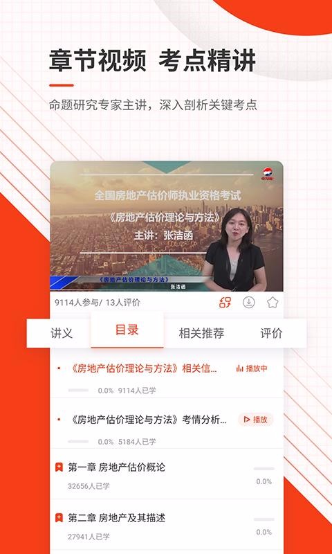 2、提供章节视频,支持用户直接查看视频目录,可以选择查看讲义等;