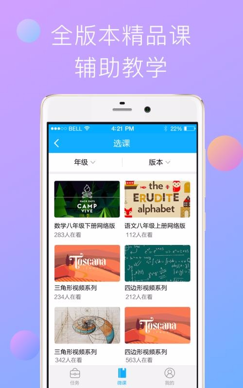 2、提供筛选的功能,教师可以根据年级、版本进行筛选查看课程;