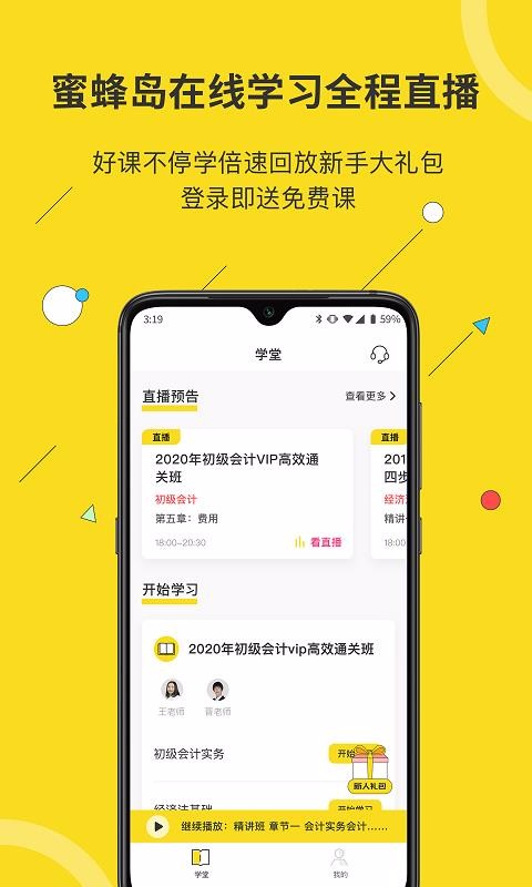 蜜蜂岛是一个会计培训平台,涵盖了丰富的培训内容,并通过直播课程和视频课程推送给学员;而学员在线也可以进行题库练习和真题模考,实时为你推送测试的结果和报告,让你及时了解自己的学习情况;随时在首页显示直播预告,详细为你标注了直播时间、课程内容和讲师,可以预约未开始的直播课程;进入视频课程的详情页面,即可查看课程目录,自行选择章节观看视频,还可以将视频下载进行离线观看,用户在观看过程中可以进行倍速播放;在线即可实现刷题,为你提供了答题卡,可以随时查看完成度,还可以设置关闭解析。