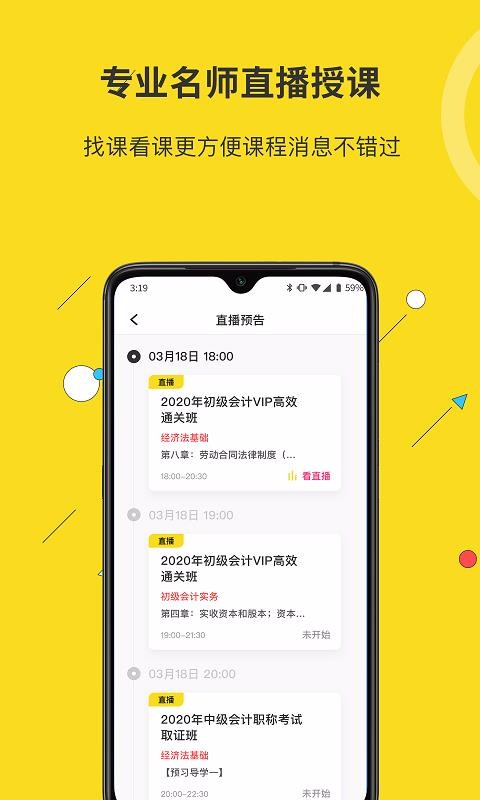 1、拥有各种专业的名师,通过直播为你进行授课,还可以实时接收课程消息;