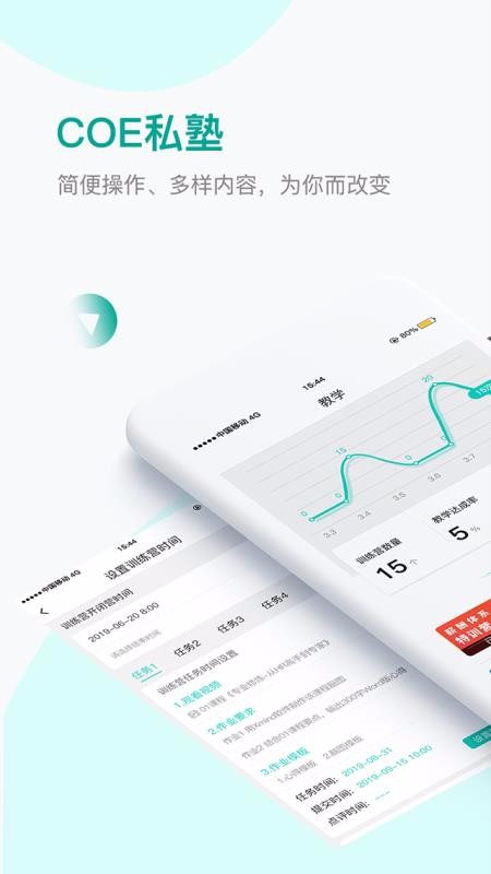 COE教练是一款针对教练员开设的教务管理平台,主要面向经营管理类的学员对象,提供丰富的教学辅助功能;在教学中心能清晰的看到自己的教学计划信息,还可以看到自己负责的训练营列表内容,支持对训练营进行单独的编辑设计,可以对里面的训练时间等内容自定义编辑;教练员能将每一个训练营中展示的任务内容添加,编辑完成相应的任务后就能直观的展示给训练营中的学员;在每一个训练营标签上都能看到该营中拥有的学员数量,进入到训练营后能看到里面的学员列表详情,还可以在营中发布各种训练作业并接收作业反馈。